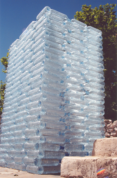 in Zusammenarbeit mit Natalie Bertrams; Volvic Flaschen, Wasser; 120 x 90 x 250 cm; im Rahmen des Projektes "L'Eau" St. Paul de Vence, Frankreich, 2000