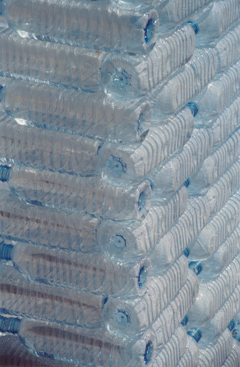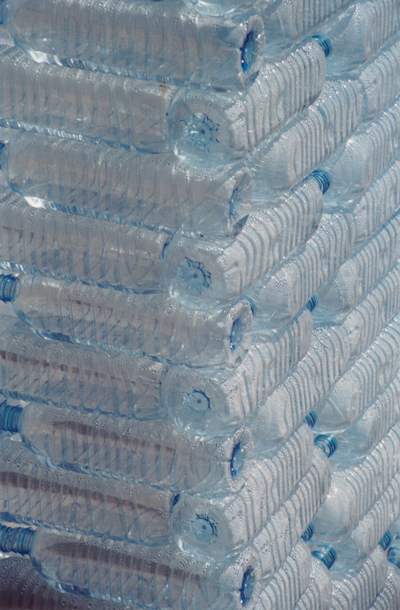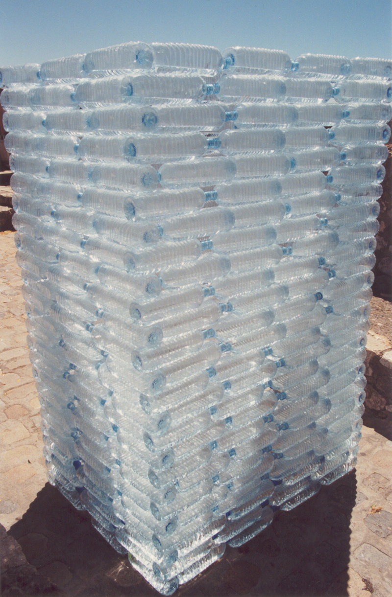 in Zusammenarbeit mit Natalie Bertrams; Volvic Flaschen, Wasser; 120 x 90 x 250 cm; im Rahmen des Projektes "L'Eau" St. Paul de Vence, Frankreich, 2000